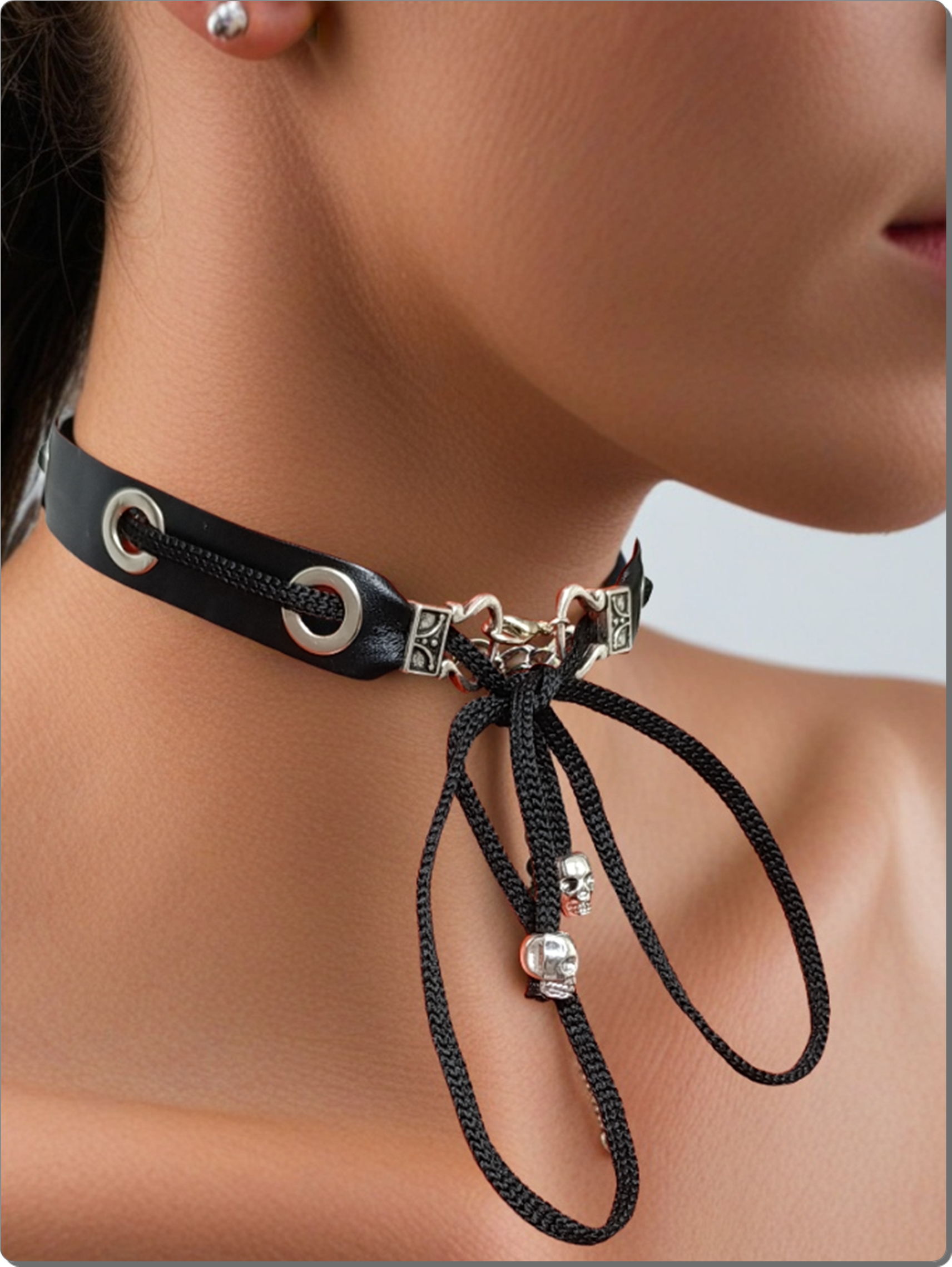 Короткое колье, которое плотно облегает шею, называют чокером, что в переводе с английского означает «душитель». Сегодня женские чокеры на шею воспринимаются как дополнение к образу, яркий акцент и завершающий штрих. Популярность этого короткого ожерелья, украшающего шею, настолько велика, что его можно увидеть и на светских львицах, которые надевают чокеры на торжественные мероприятия, и на девушках-подростках. В зависимости от размеров, цвета и степени изящества их могут носить и девушки, и парни. В женских моделях чокеров может быть дополнительный элемент – подвеска или кулон, который можно менять, создавая каждый день новые незабываемые и стильные образы.