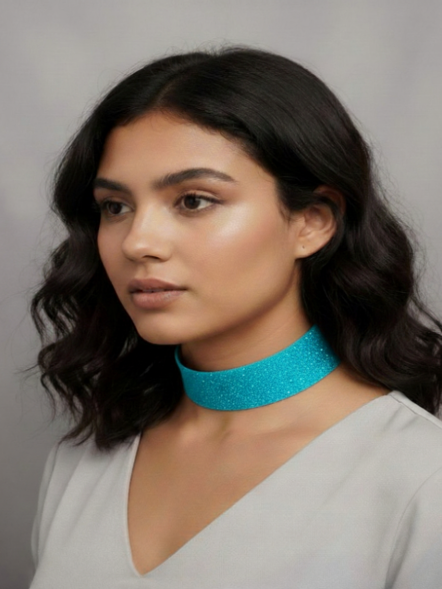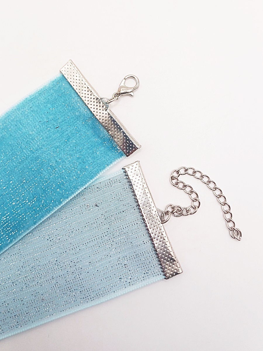 Тканевый с люрексом чокер без подвески. Широкий 4 см Качественное, модное украшение на шею. Длина украшения 30+7 см, ширина 4 см Застежка - карабин серебристого цвета.