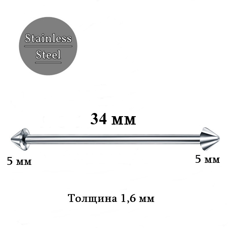 Штанга: длина 34 мм, толщина 1,6 мм.