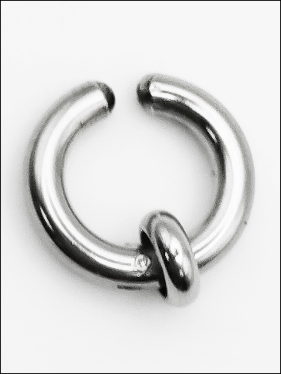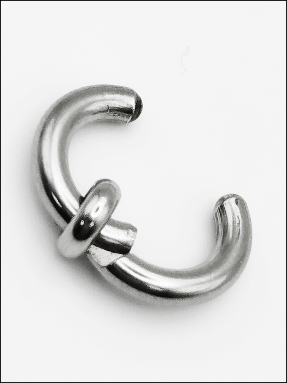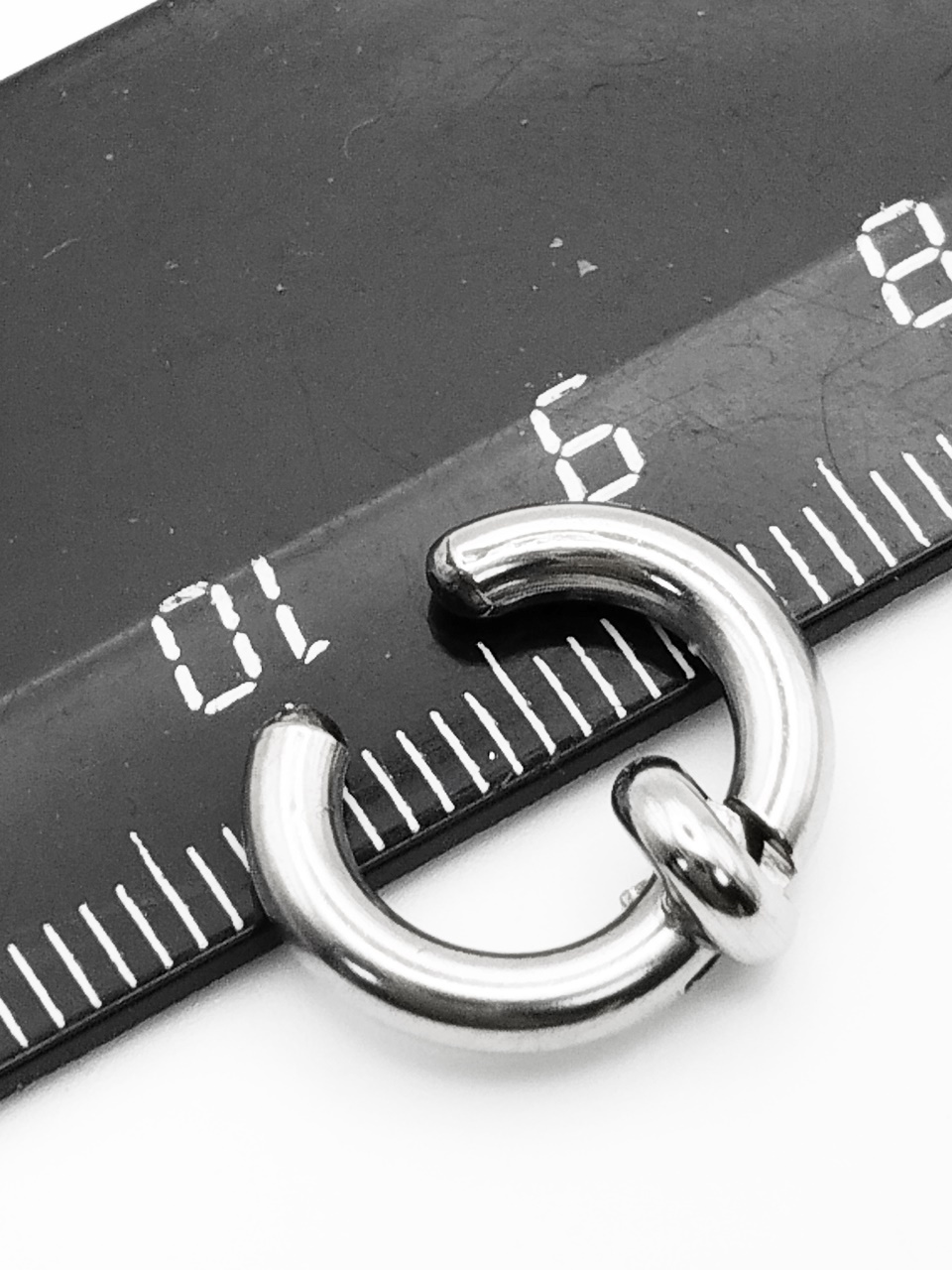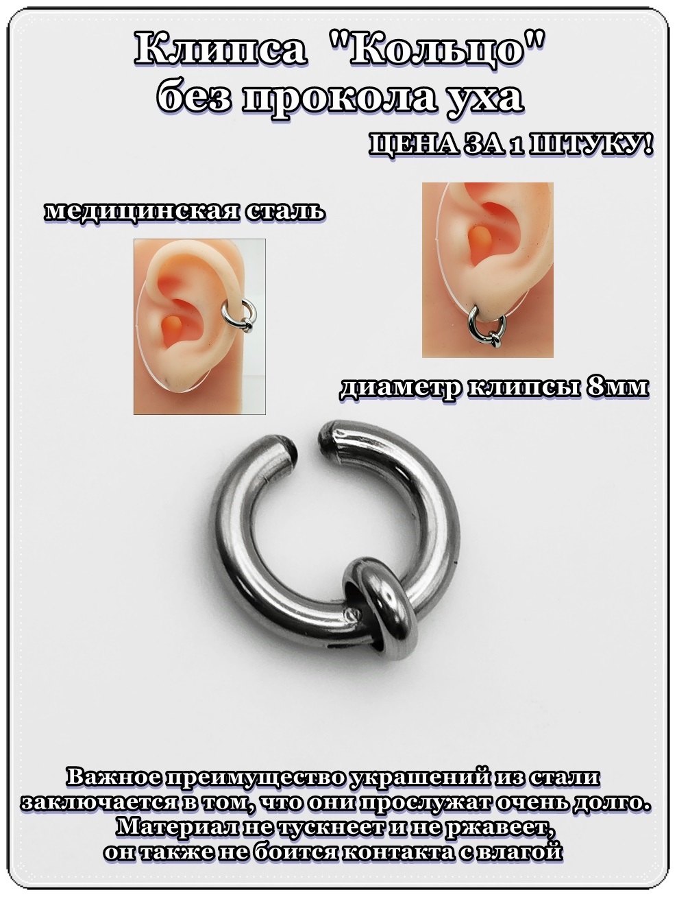 Материал клипсы: медицинская сталь. Диаметр 8мм (внутренний), толщина 2.5мм.