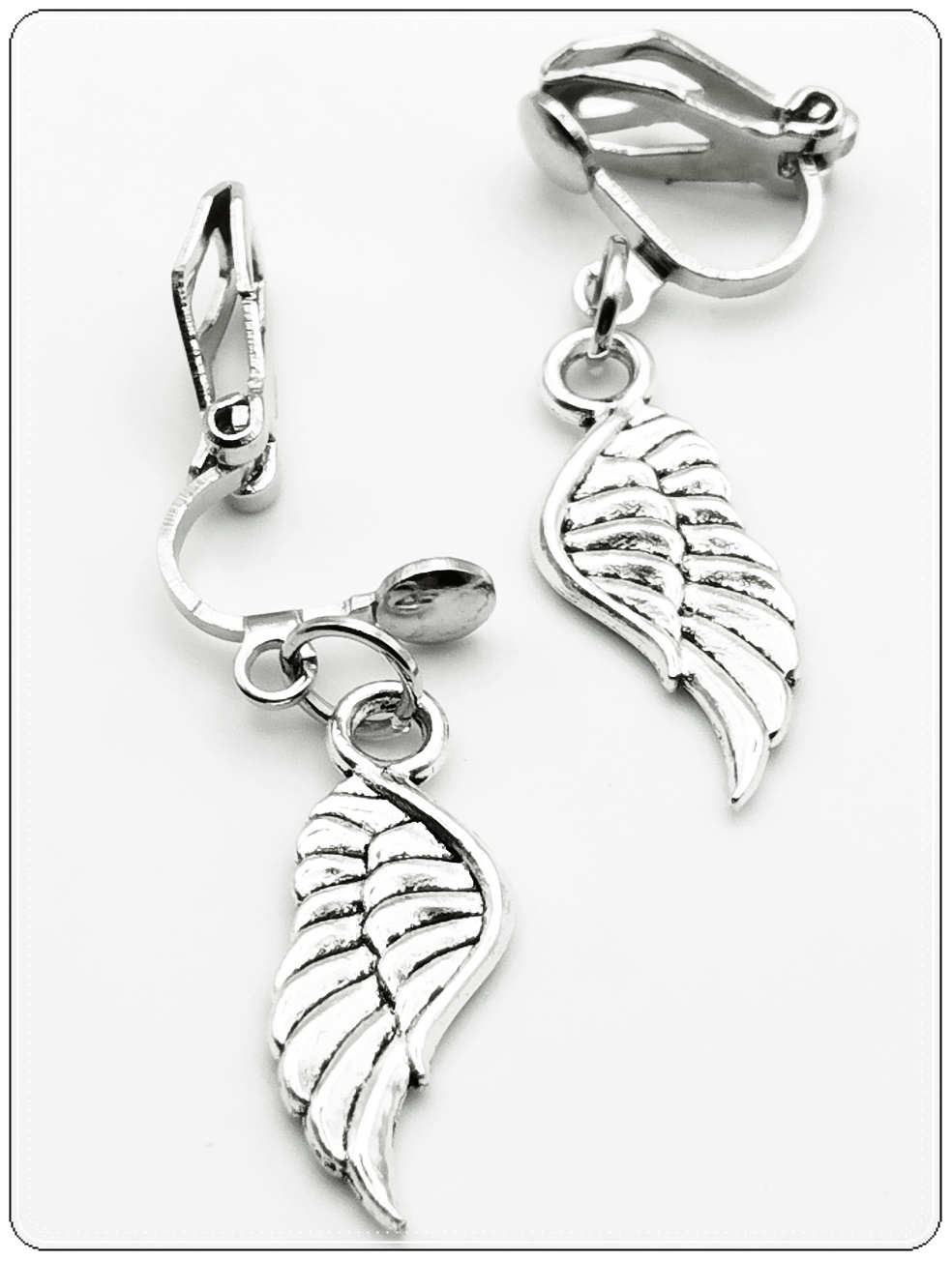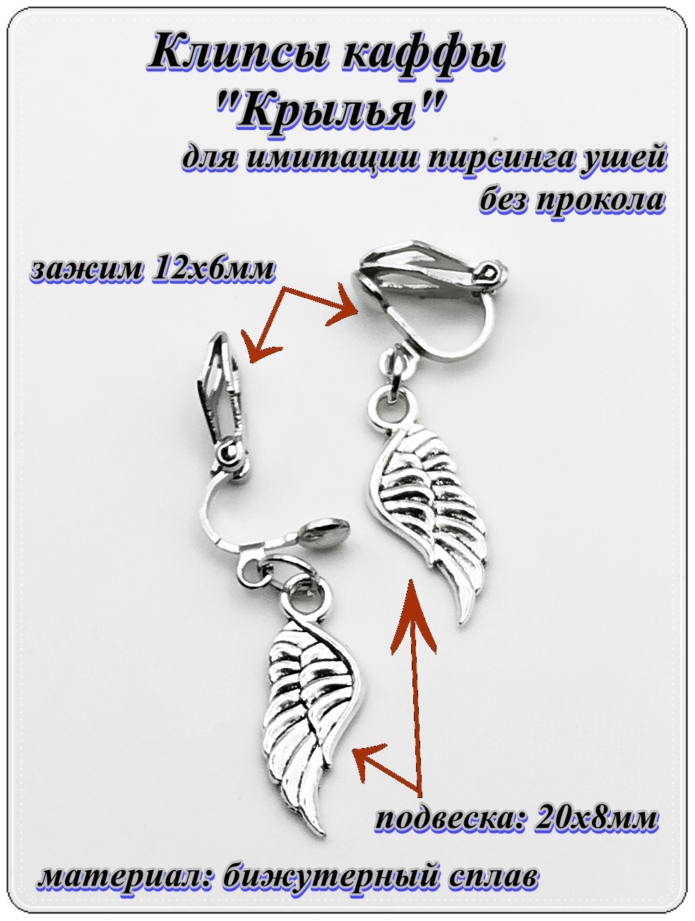 Серьги клипсы (без прокола) с подвеской "Крылья ангела".