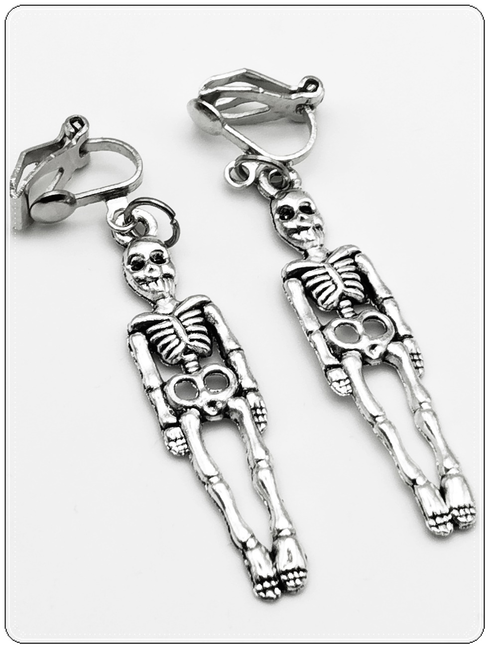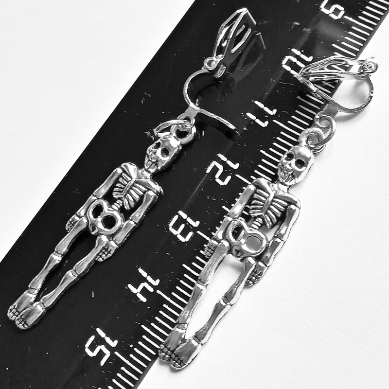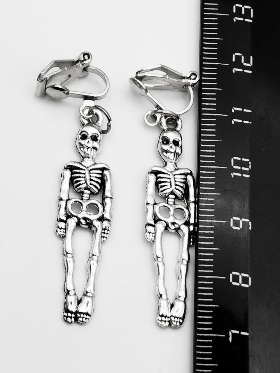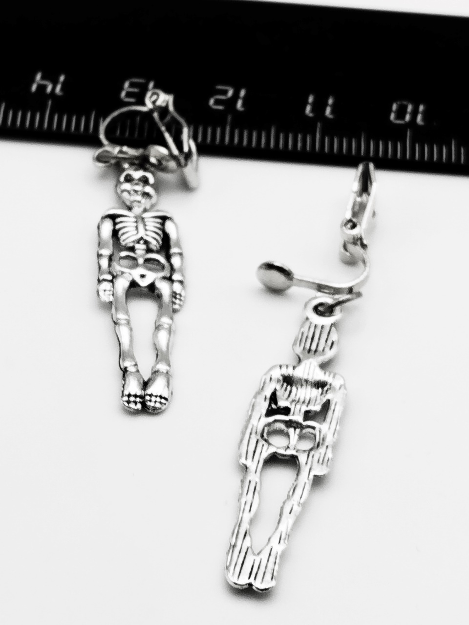 Серьги клипсы (без прокола) с подвеской "Скелеты".