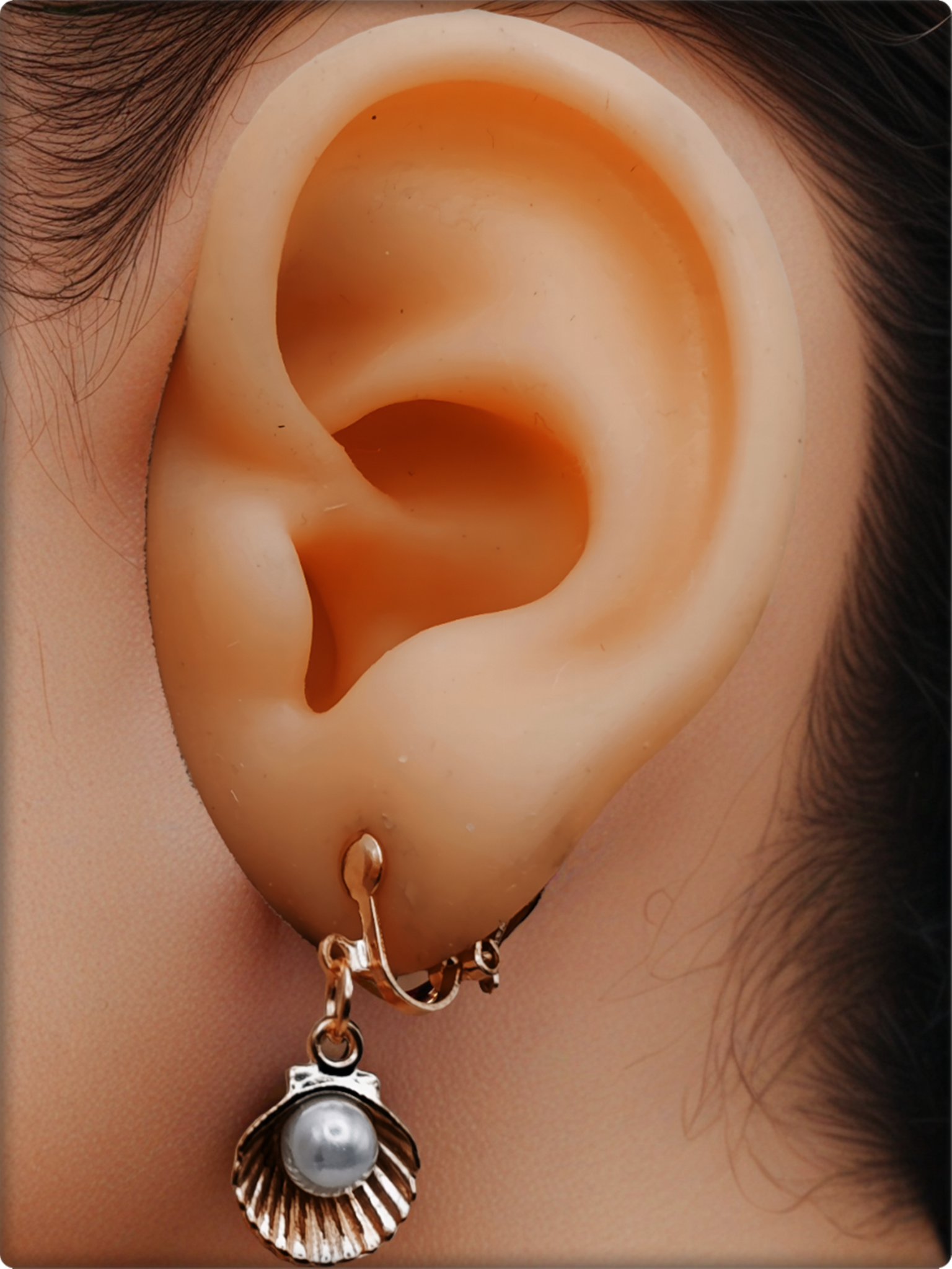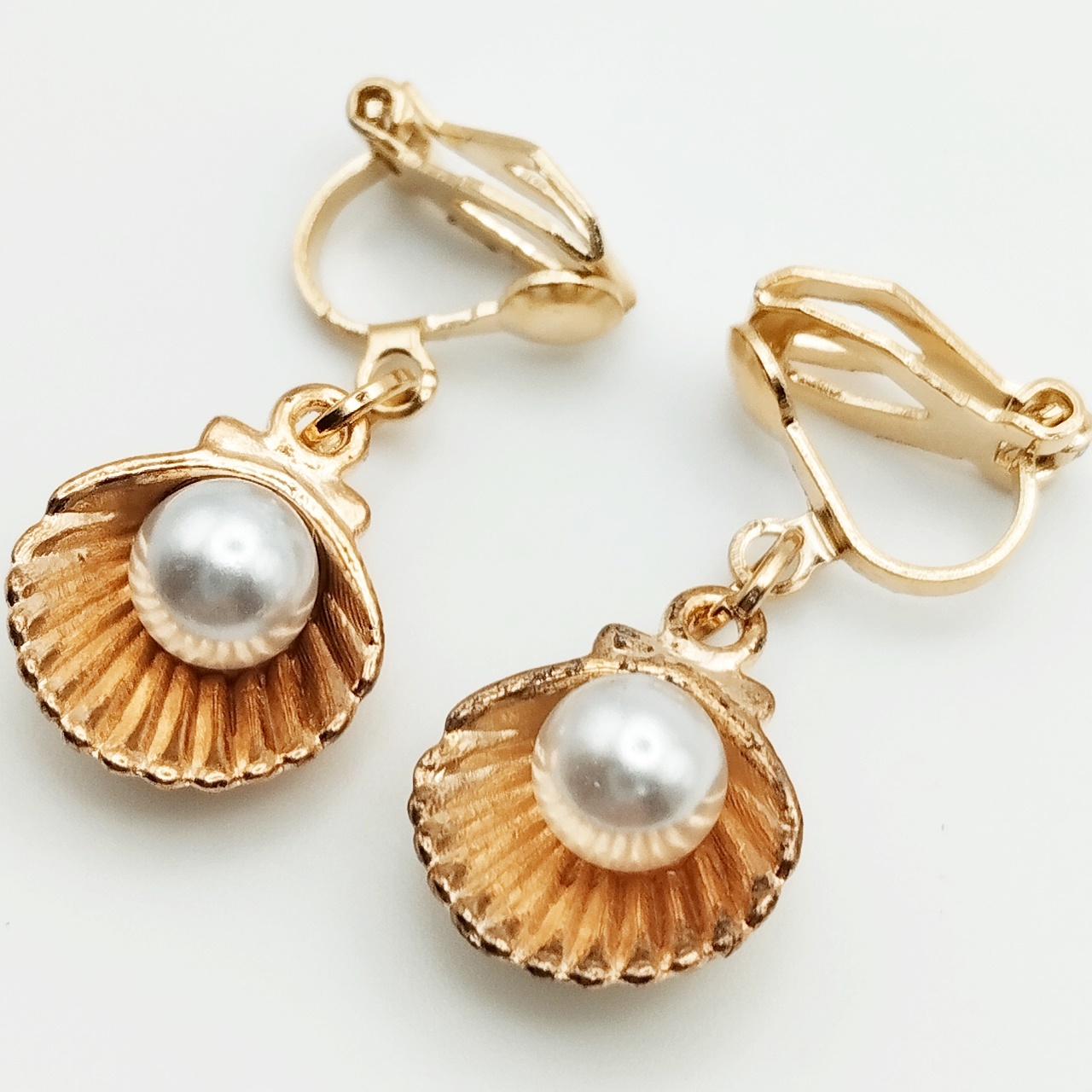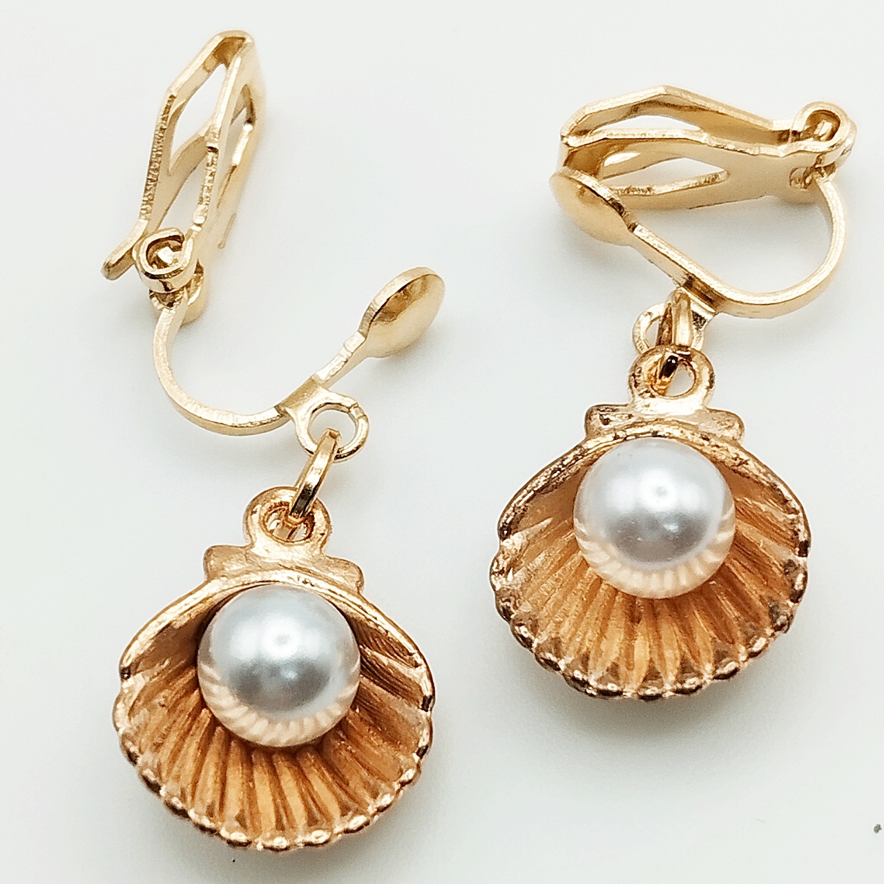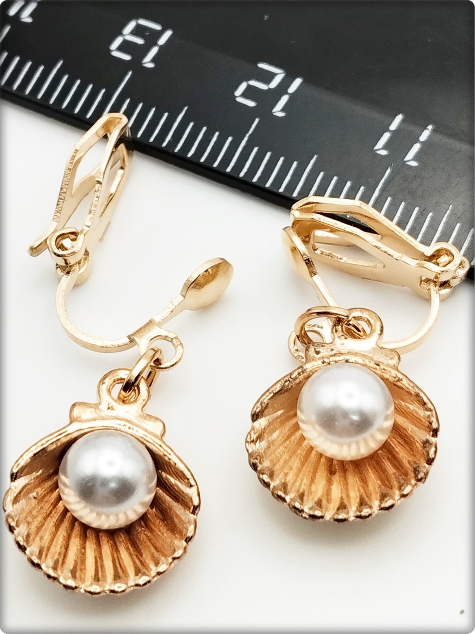 Серьги клипсы (без прокола) с подвеской "Жемчужная ракушка".