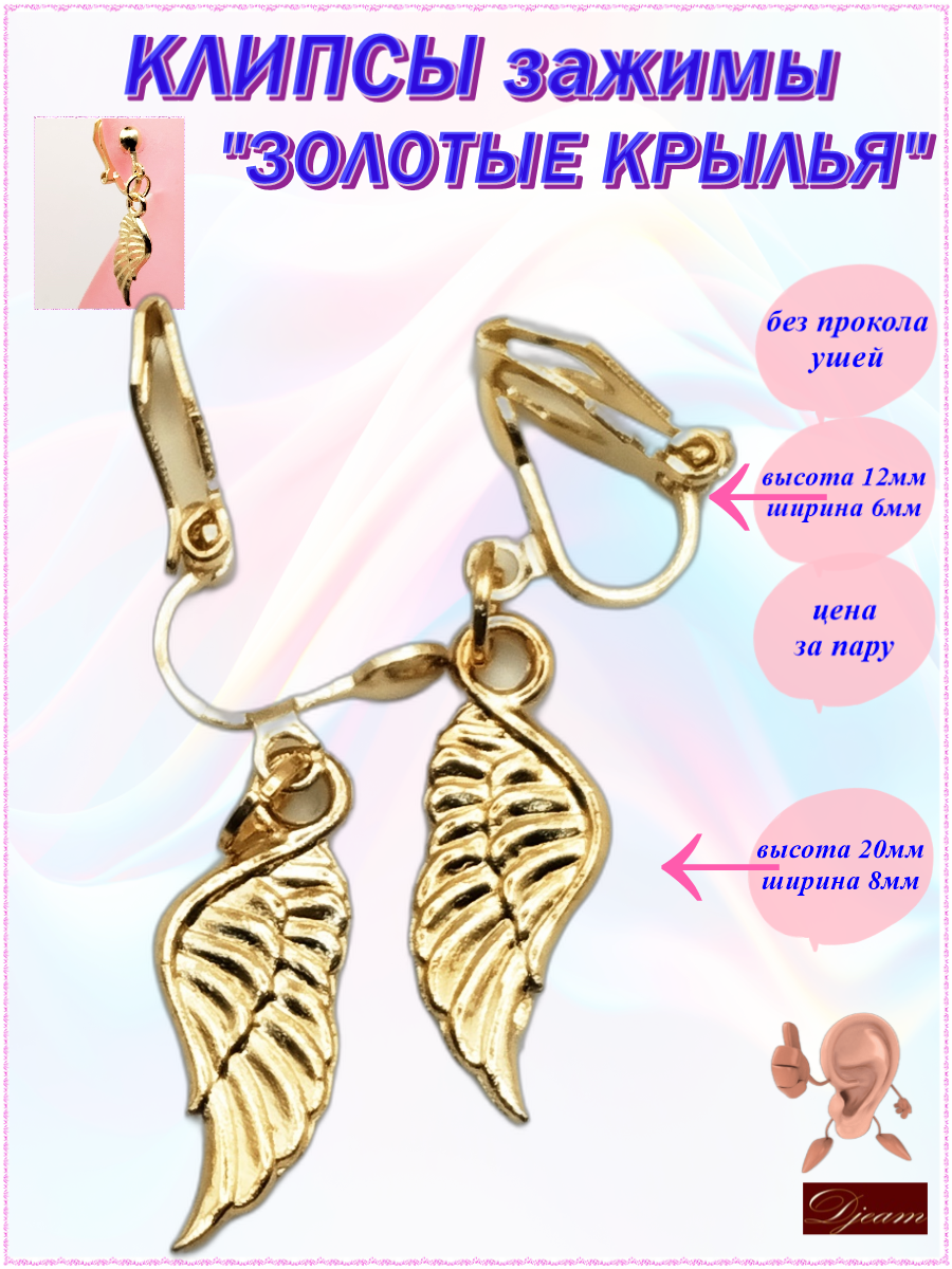 Серьги клипсы (без прокола) с подвеской "Золотые короны".