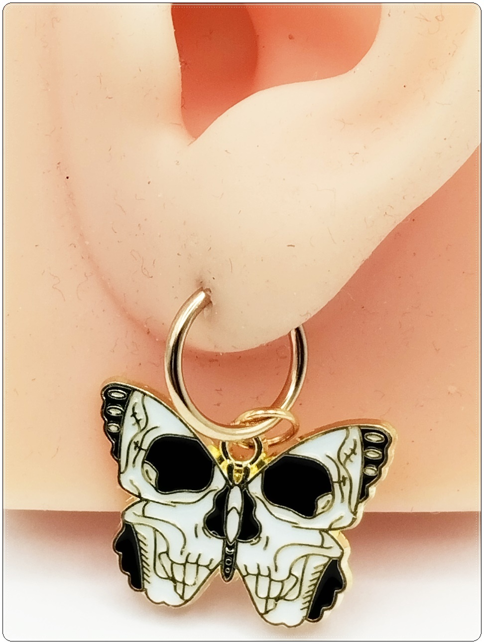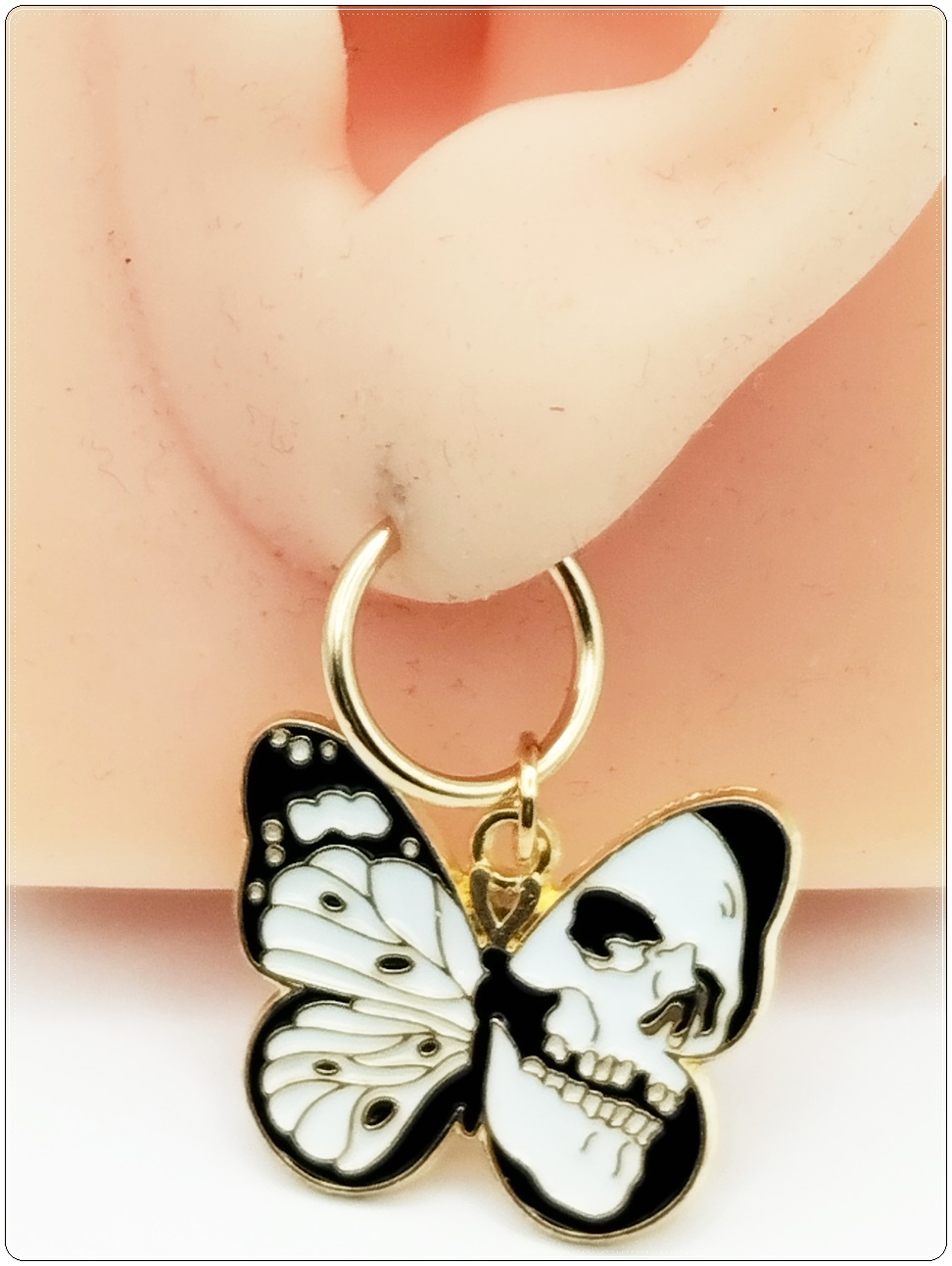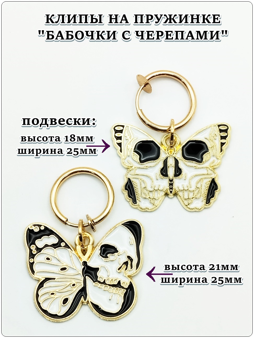 Клипсы кольца на пружинке "Бабочки с черепами" золотистые.