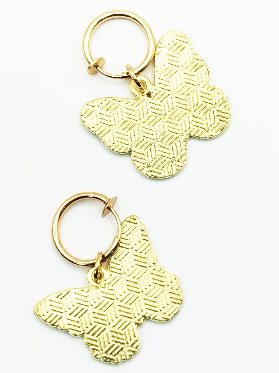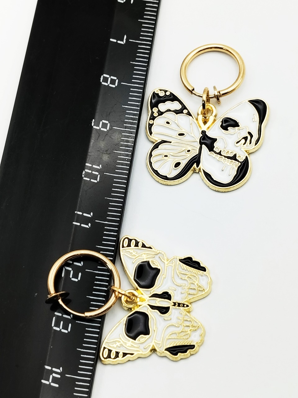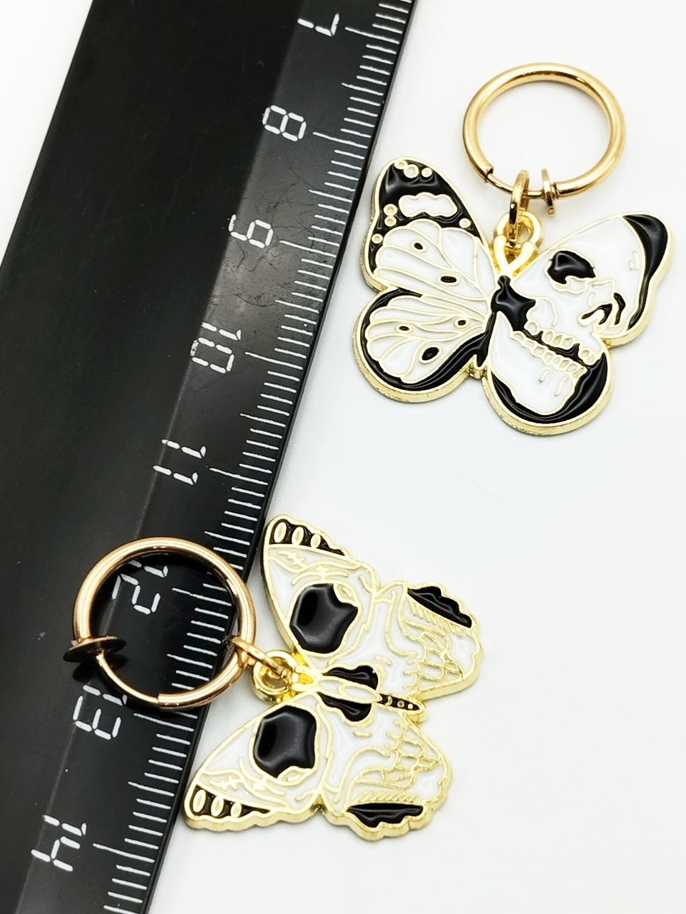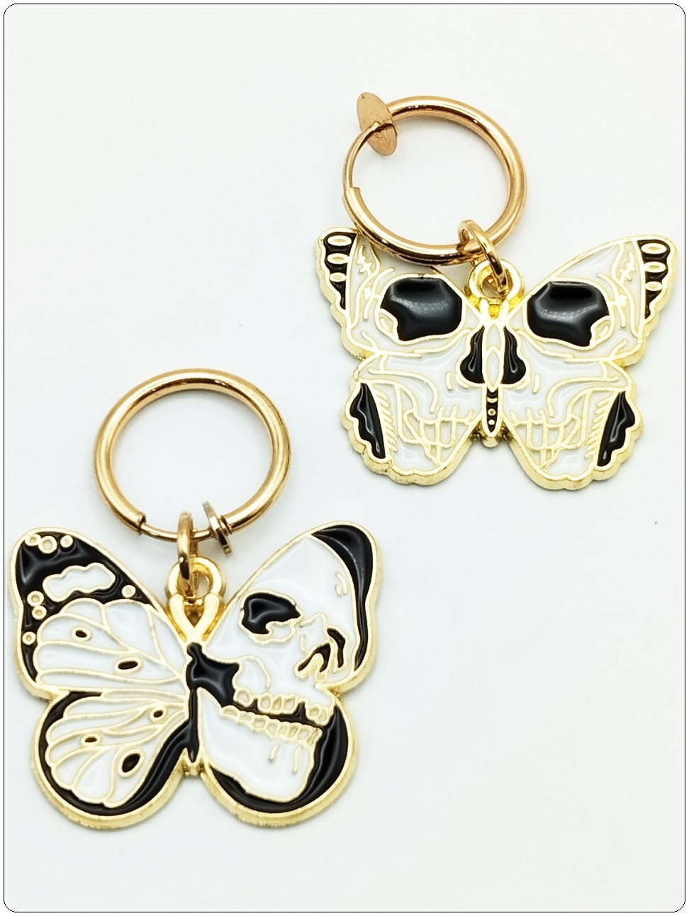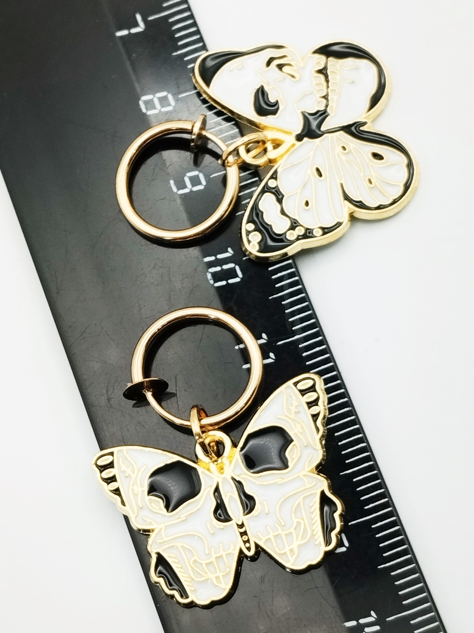Клипсы кольца "Бабочки с черепами" золотистые.