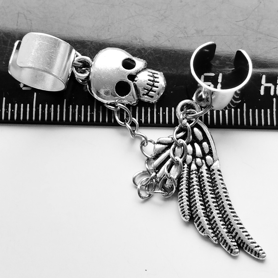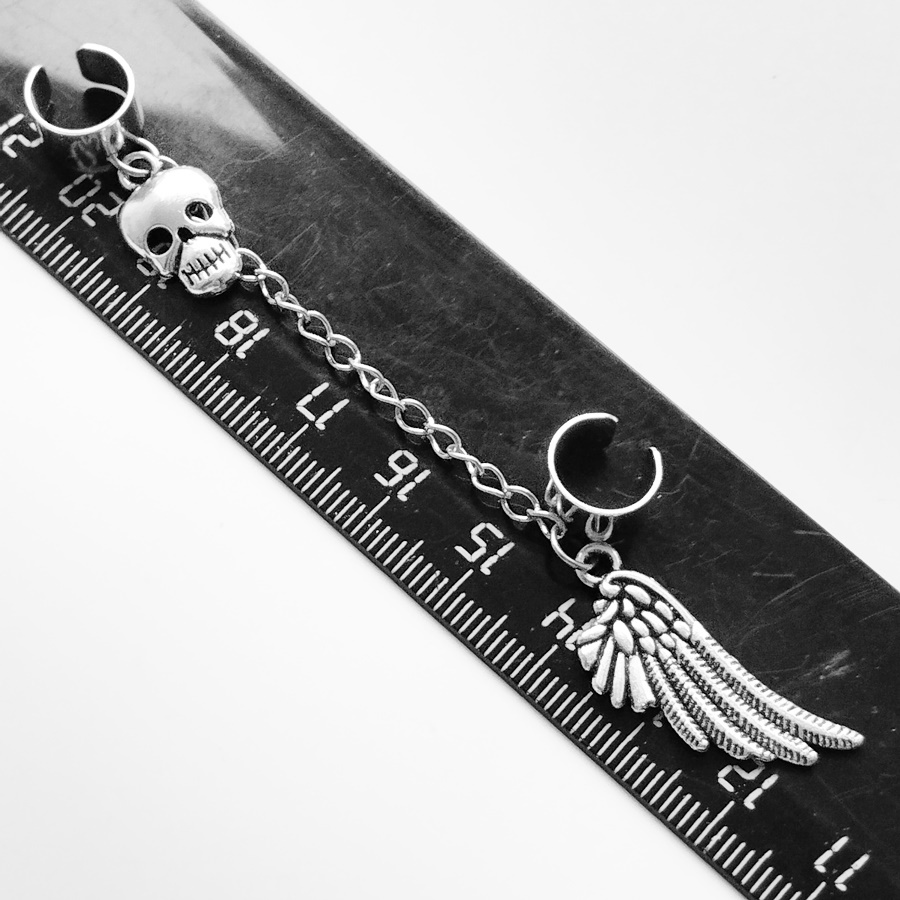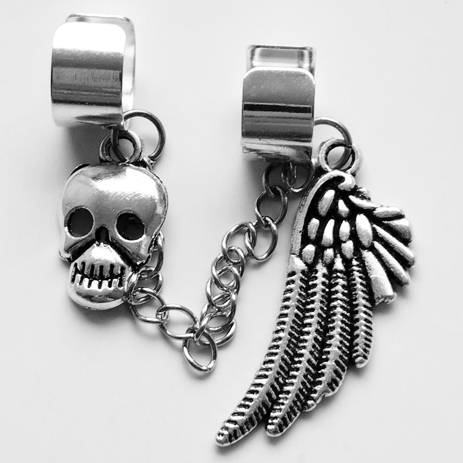 Клипсы "Крыло, череп".