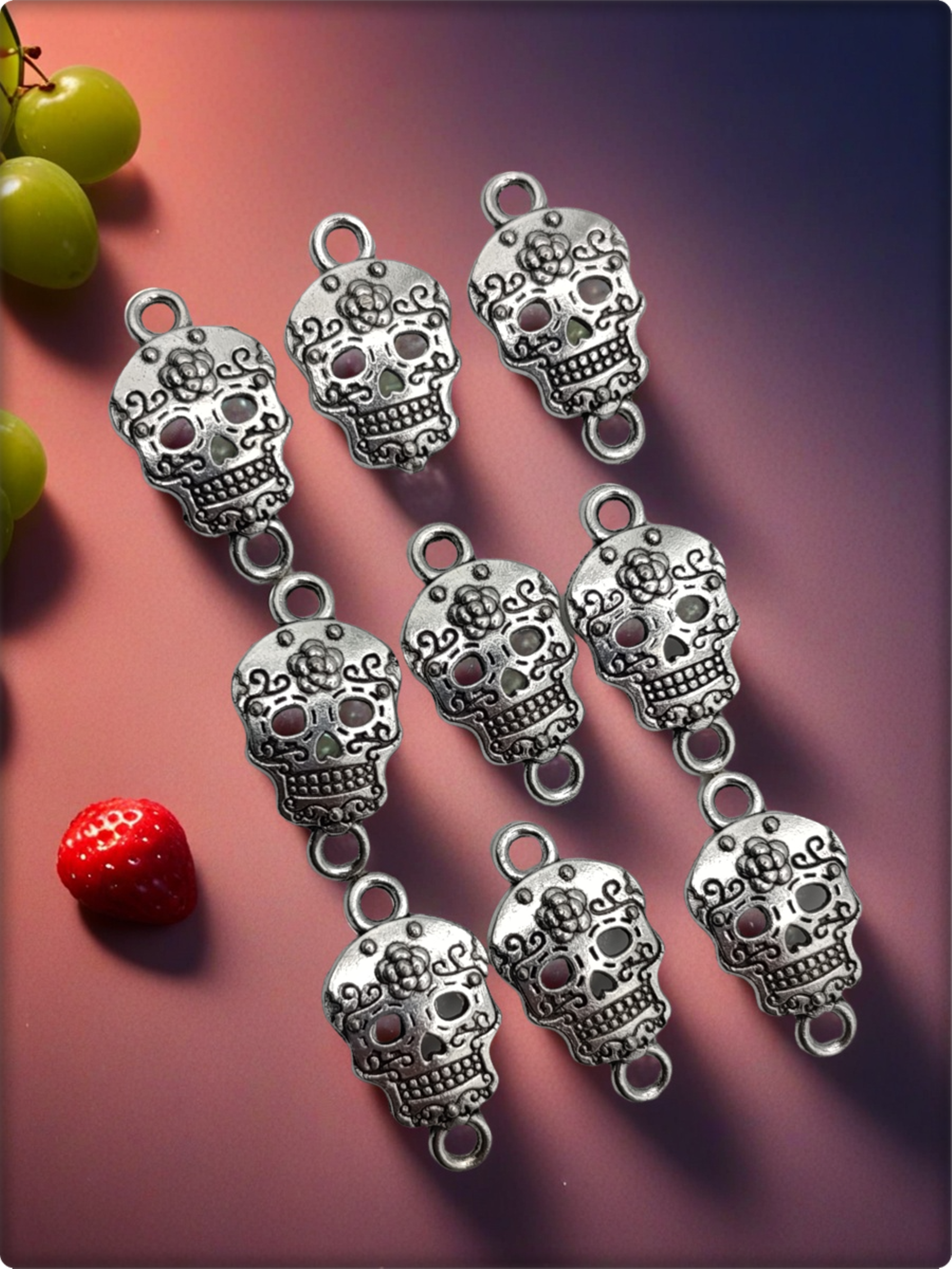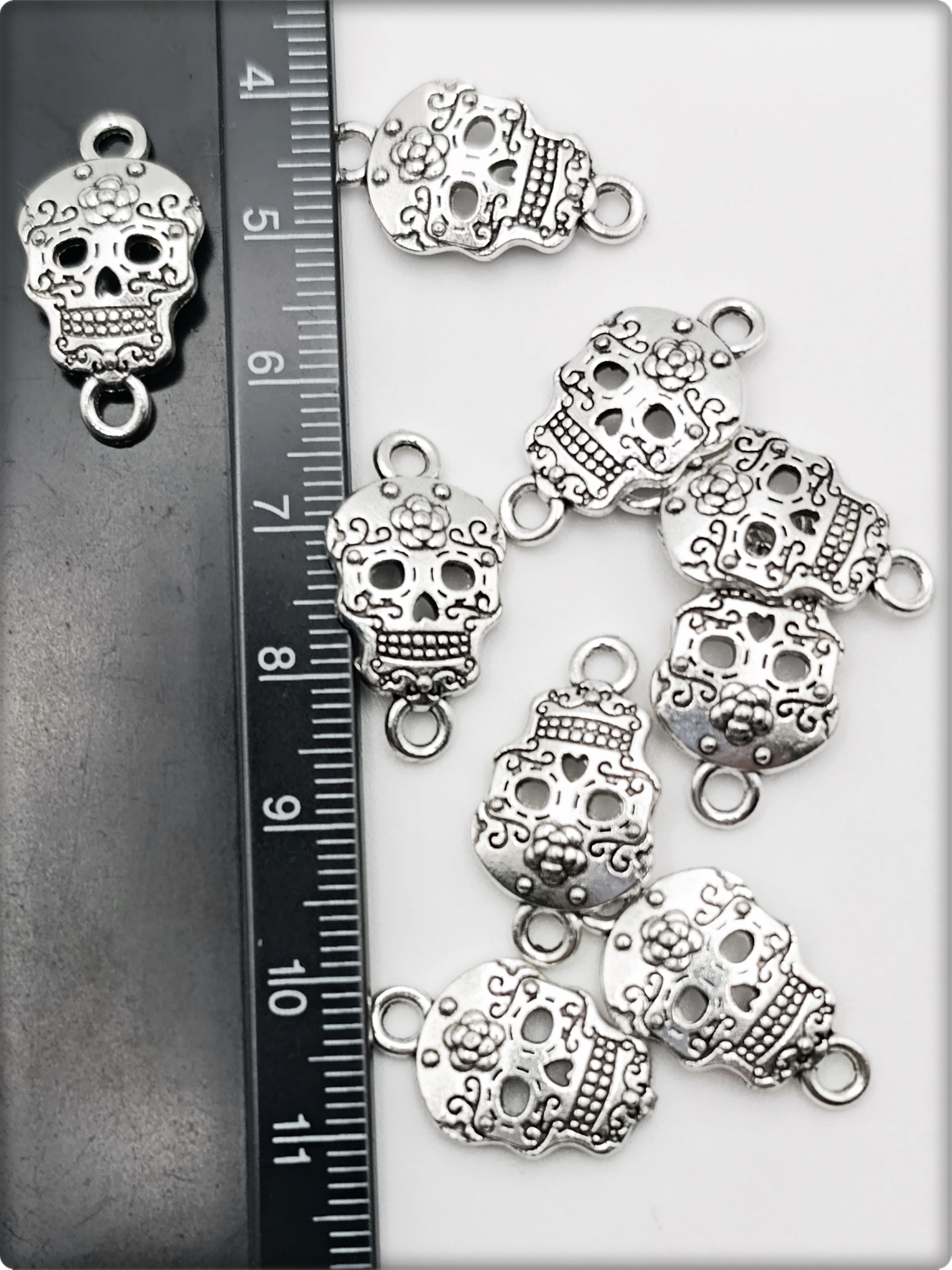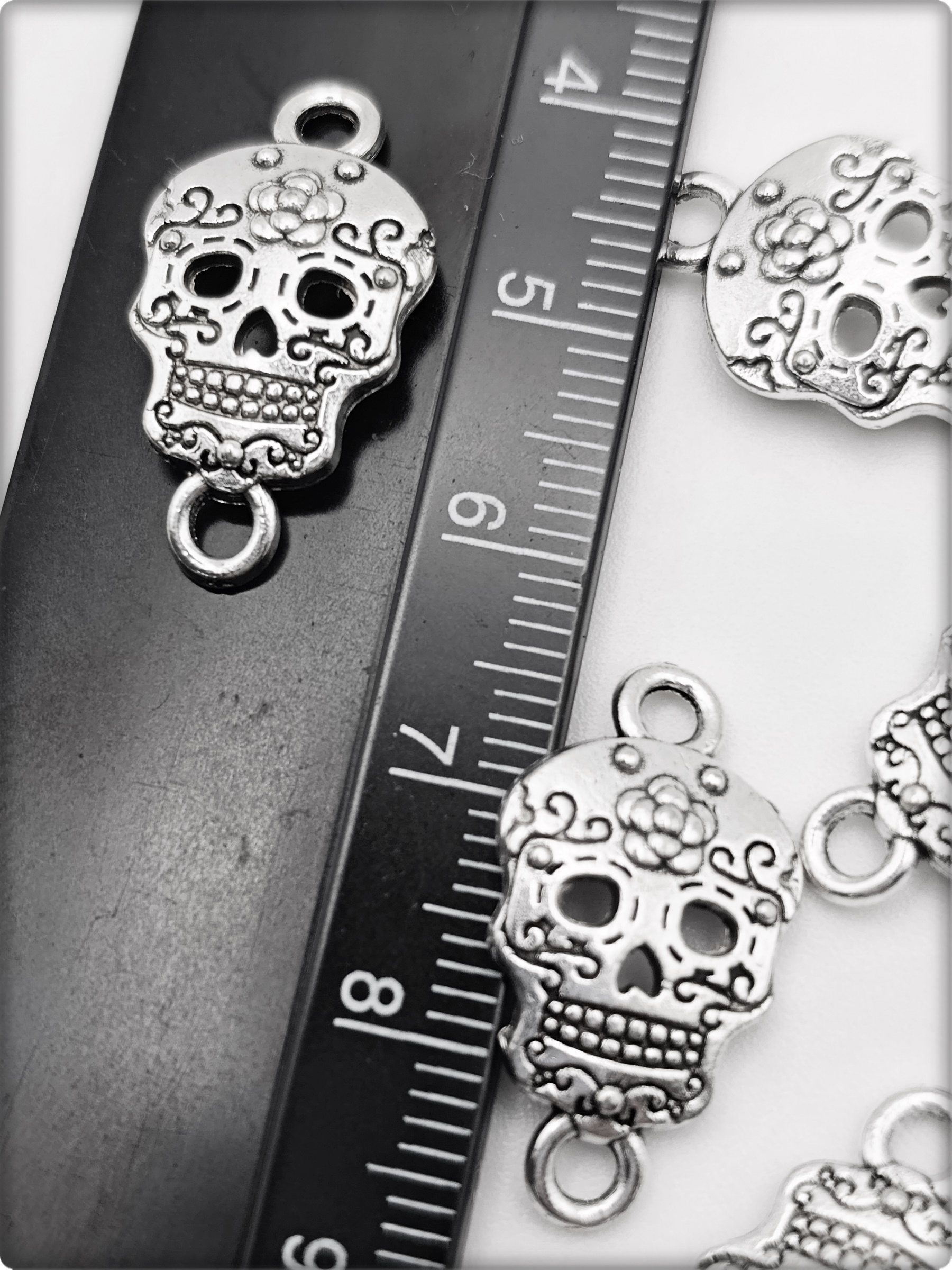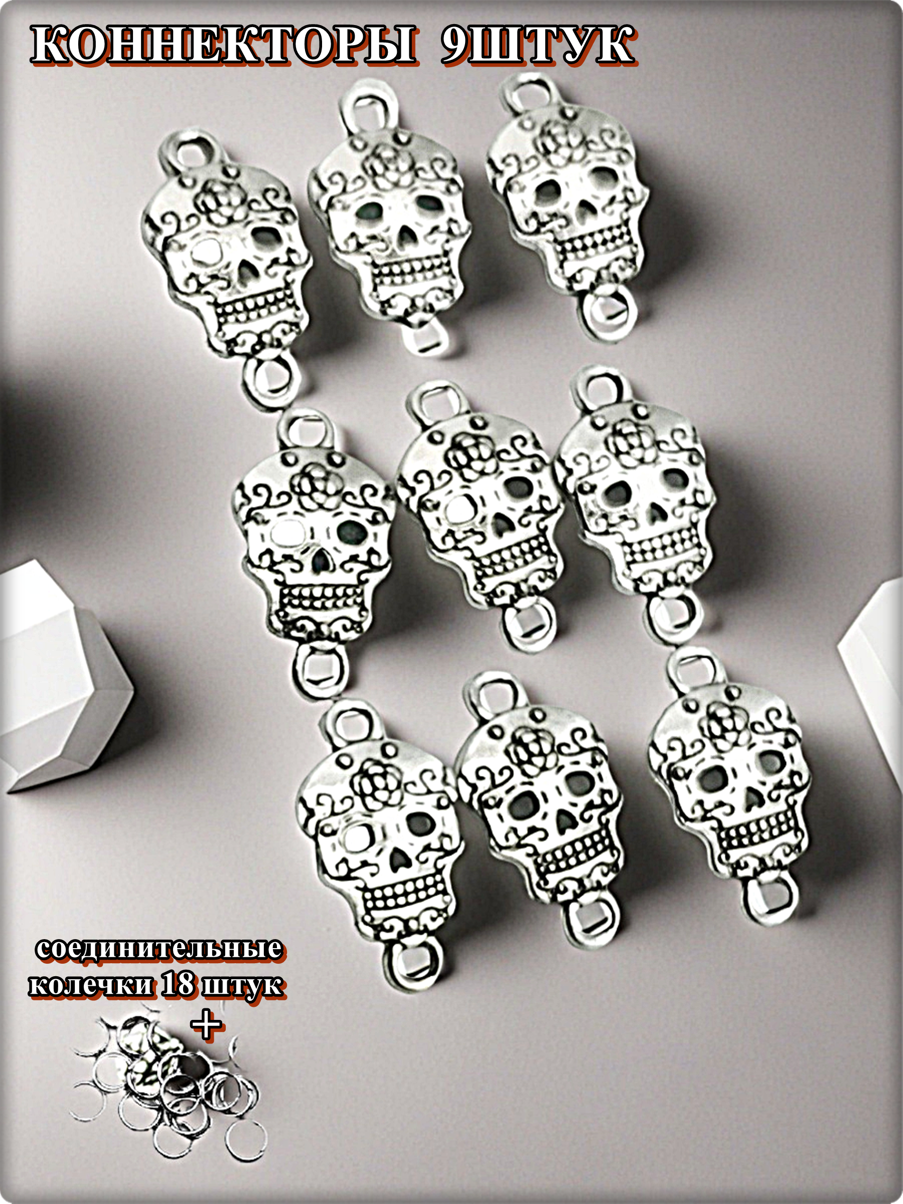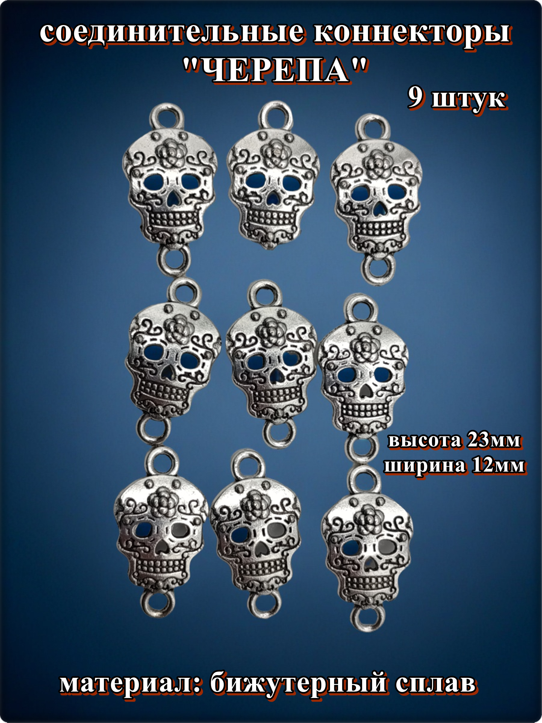 Материал – высококачественный металл, покрытый хромом, устойчив к потускнению и коррозии. Идеально подходят для браслетов, кулонов, серег и других изделий ручного творчества. Удобны в использовании благодаря надежному соединительному механизму. Добавьте уникальность вашим украшениям, подчеркните индивидуальность дизайна! Создавайте оригинальные аксессуары самостоятельно вместе с коннекторами "Черепа"
