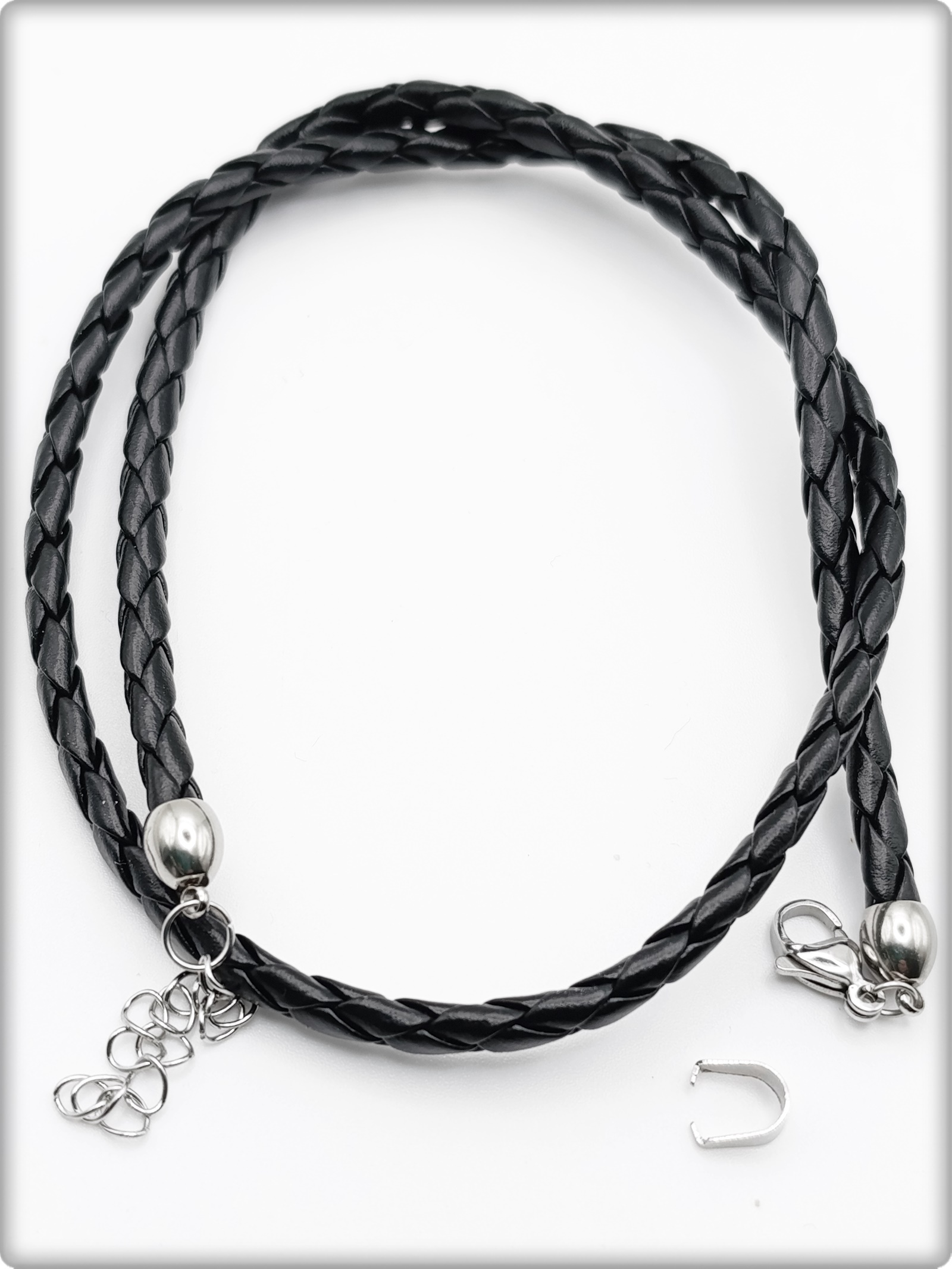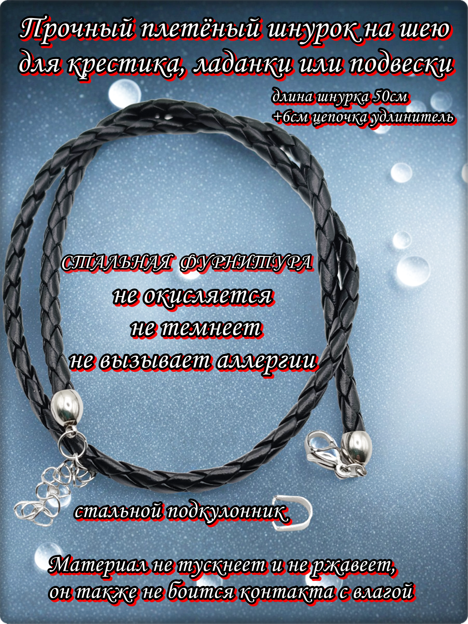 Прочный плетёный шнурок на шею для крестика, ладанки или подвески (гайтан). Стальной подкулонник в подарок.