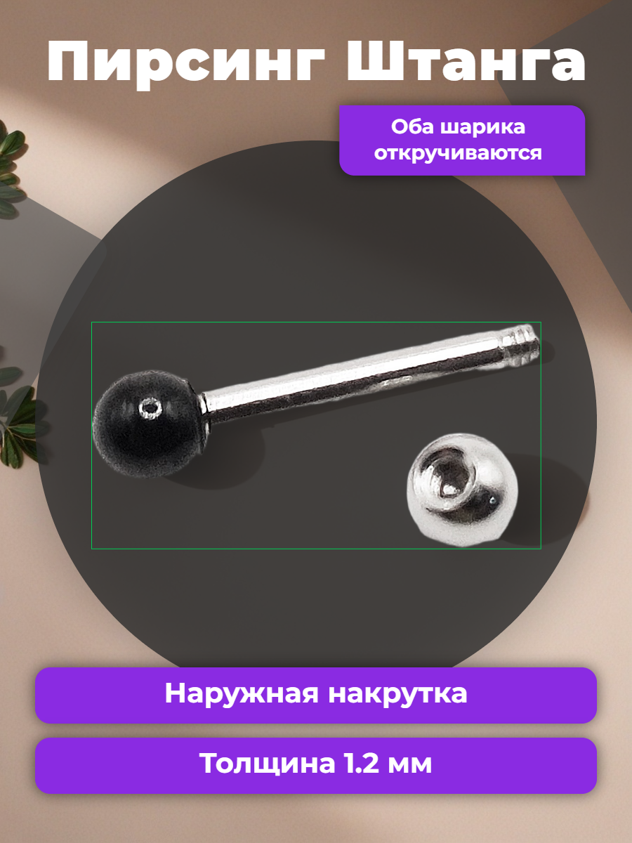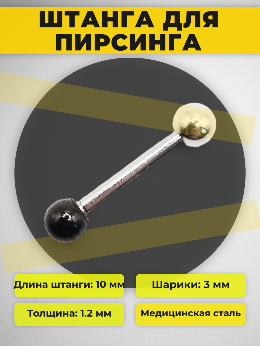 Длина штанги 10 мм, толщина 1,2 мм. Диаметр шариков 3 мм.