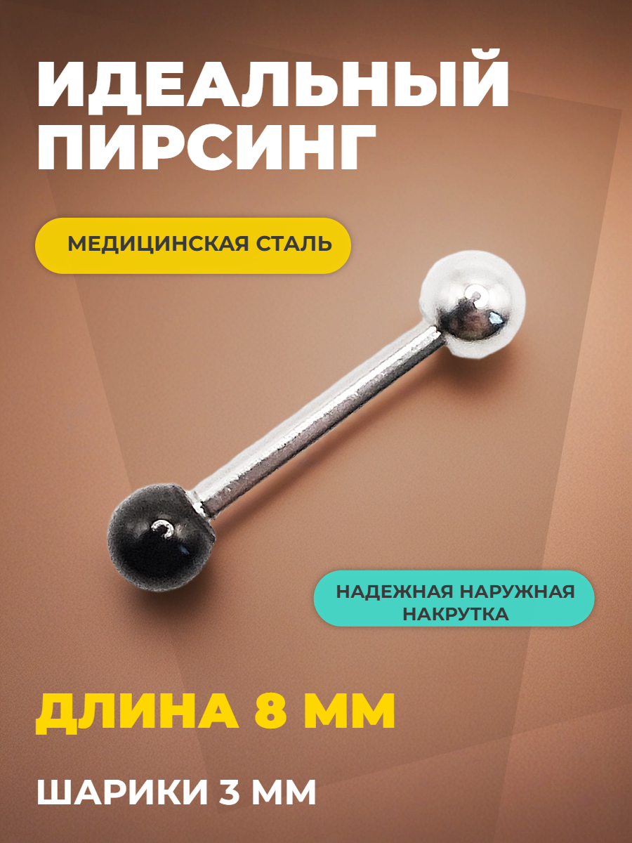 Штанга 8 мм для пирсинга. Медицинская сталь.
