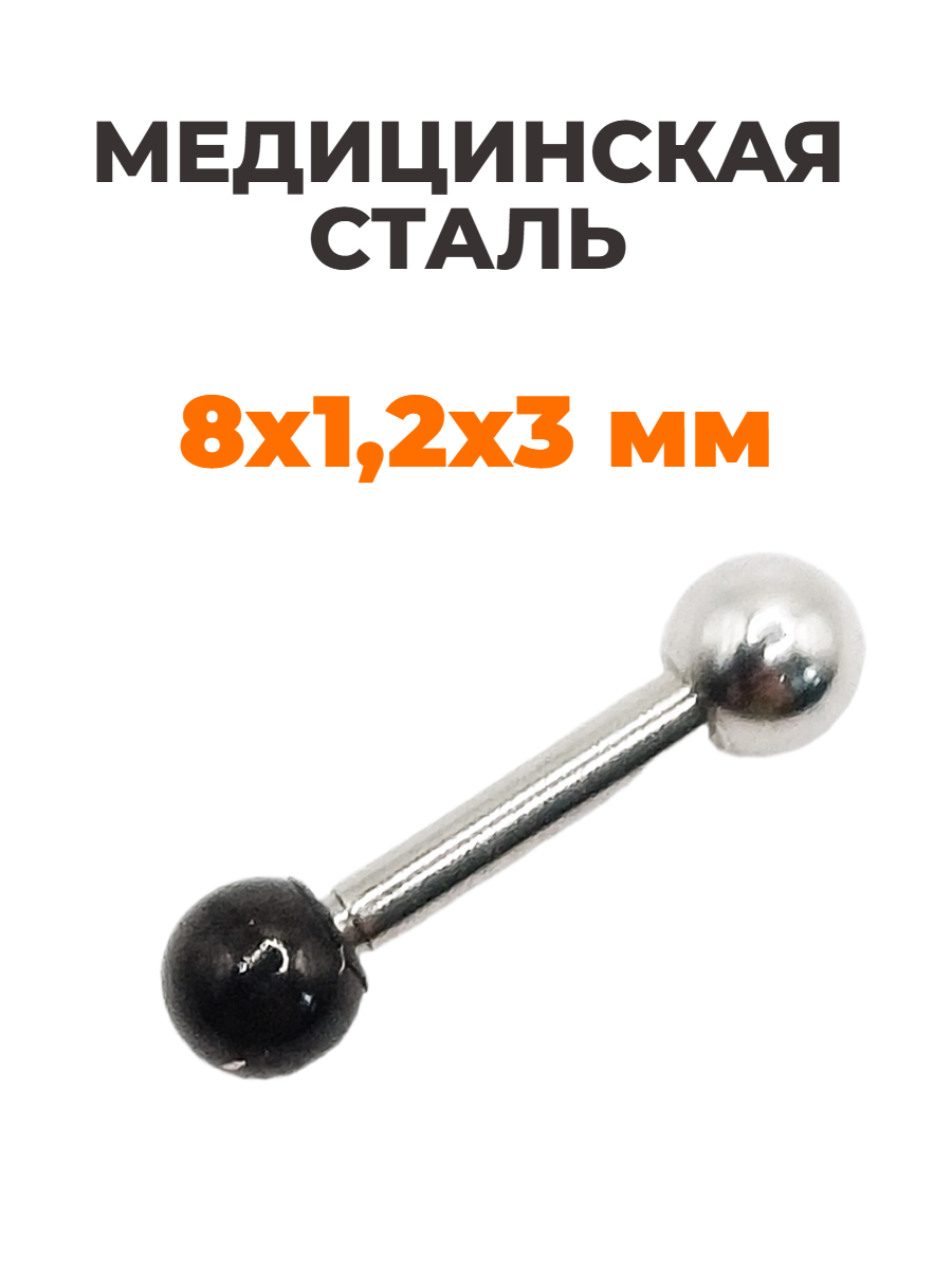 Длина штанги 8 мм, толщина 1,2 мм. Диаметр шариков 3 мм.