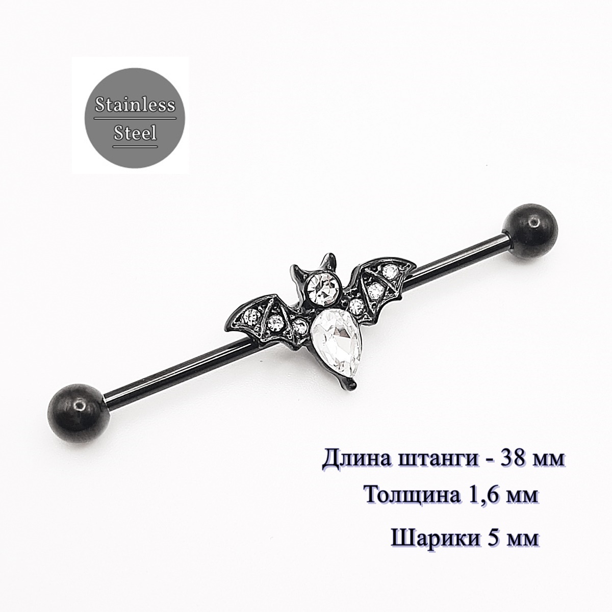 Для пирсинга ушей штанга на индастриал "Летучая мышь".