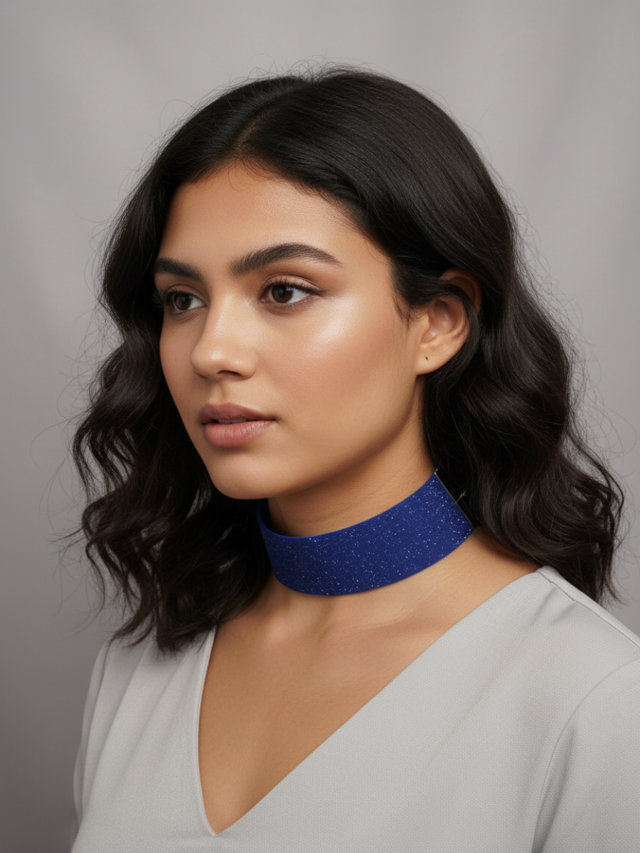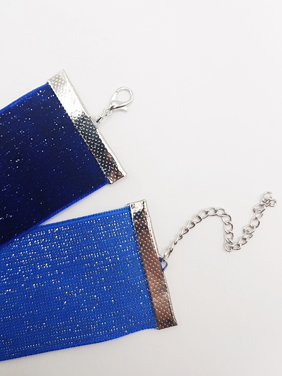 Тканевый с люрексом чокер без подвески. Широкий 4 см Качественное, модное украшение на шею. Длина украшения 30+7 см, ширина 4 см Застежка - карабин серебристого цвета.