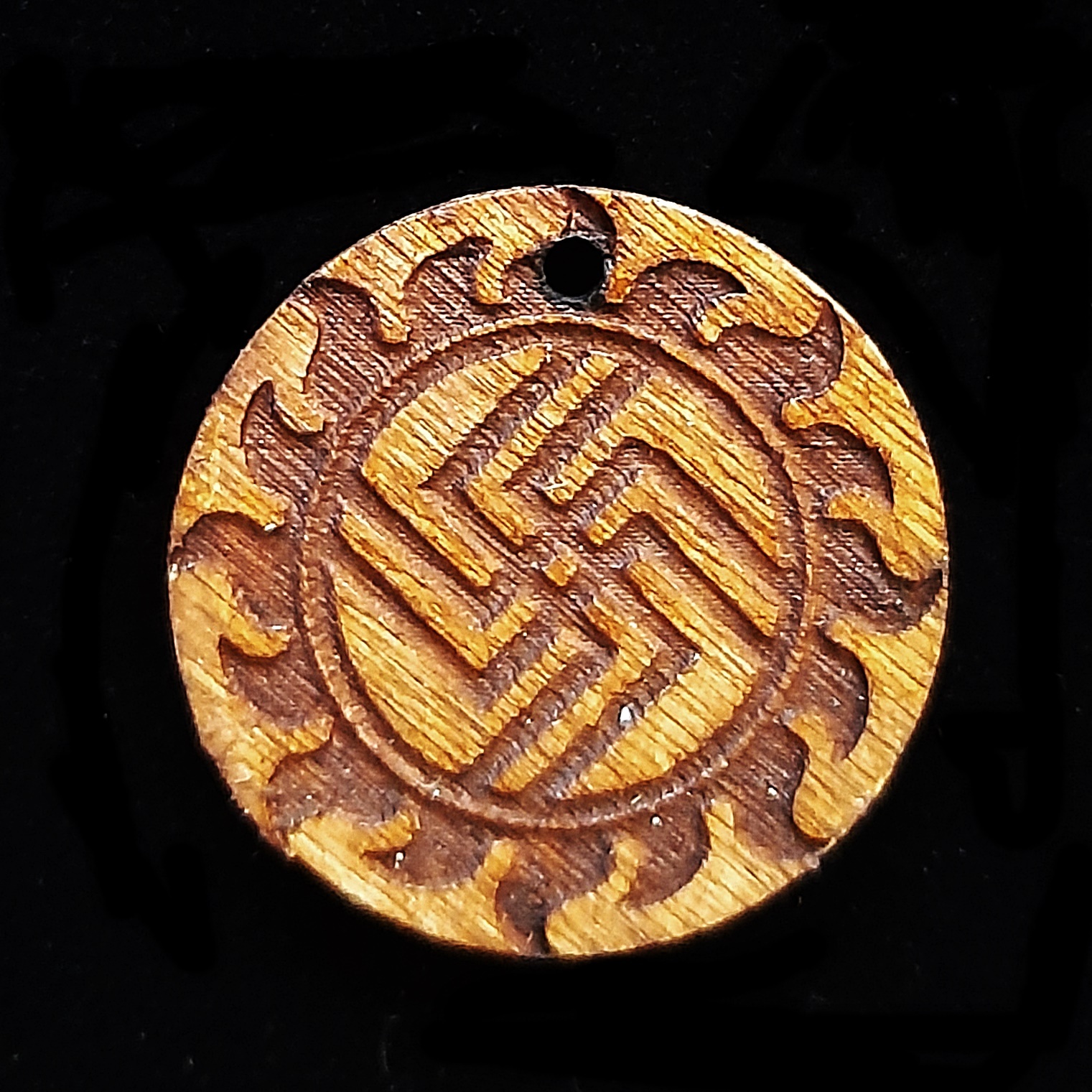 Славянский символ высшей мудрости " Небесный вепрь" материал ― дерево ― ясень, шнур ― вощеный хлопок диаметр ― 3 см Небесный вепрь - знак единства прошлого и будущего, материального и духовного. Это символ высшей мудрости, прощающий ум, влияющий на движение времени в жизни человека, на исполнение его желаний. Загадайте желание и носите его с собой, пока задуманное не исполнится.