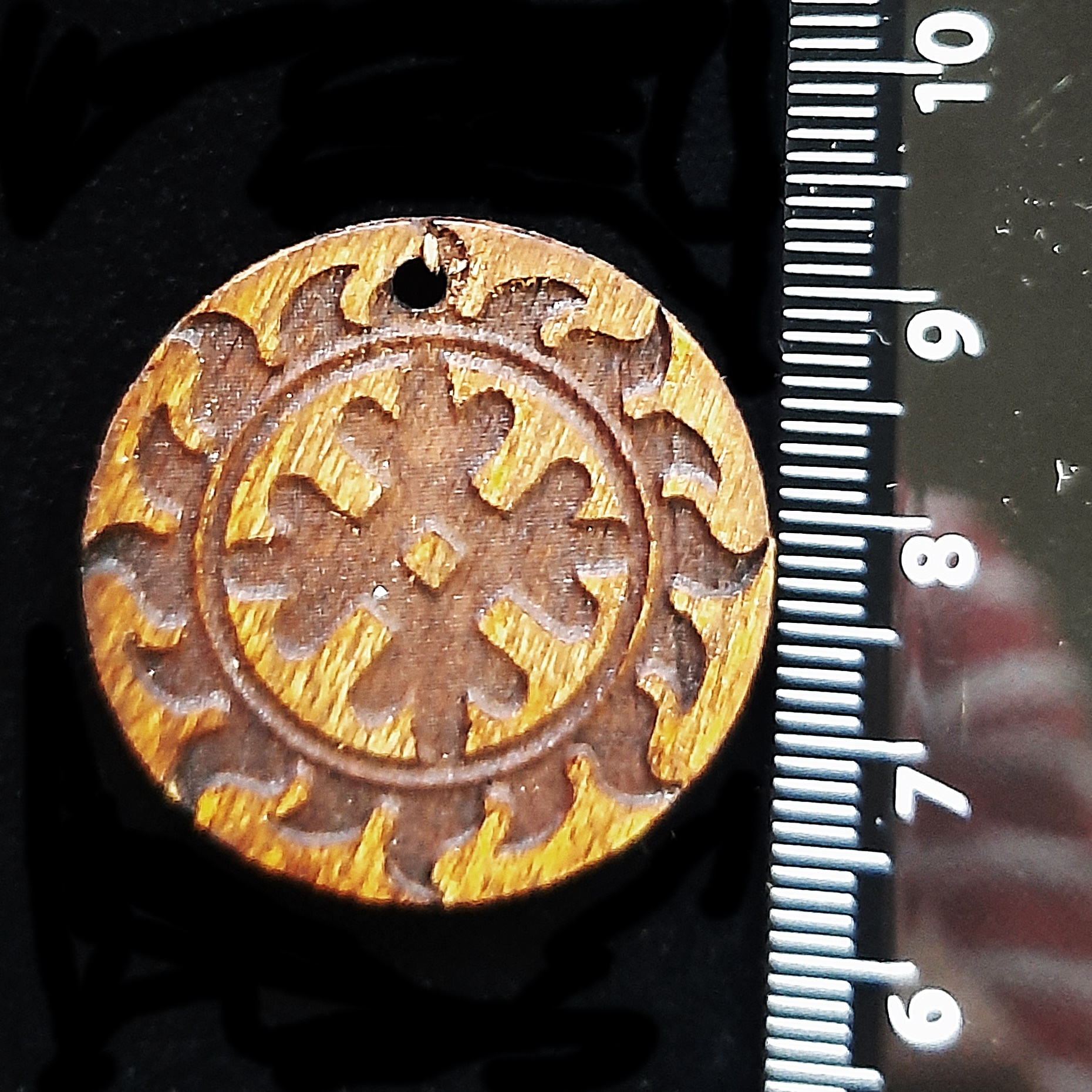 Славянский деревянный оберег "Целебник". Материал береза. Цвет Мокко. Длина шнура 50 см. Диаметр 3 см